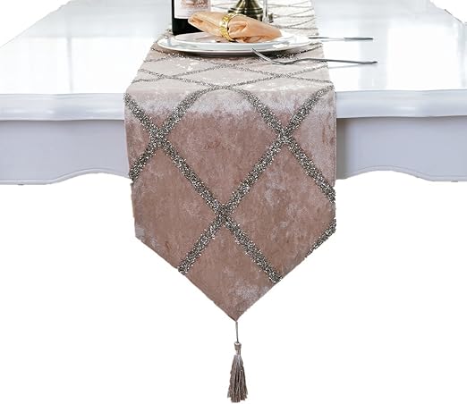 Diamante Stripe Table Runner Crystal Decoration 71 Inch Long Table Runner With Tassels Beige Pracatum Org Br