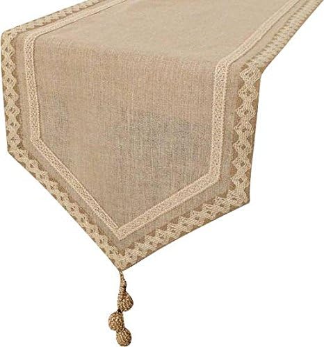 The Homecentric Beige Table Runners 35 X 180 Cm Linen Jute Lace