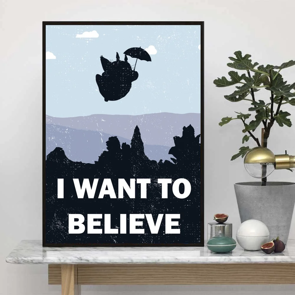 I Want To Believe My Neighbor Totoro Wall Art Canvas Paintings