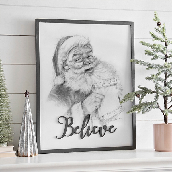 Gray Believe Santa Sketch Framed Art Print Kirklands