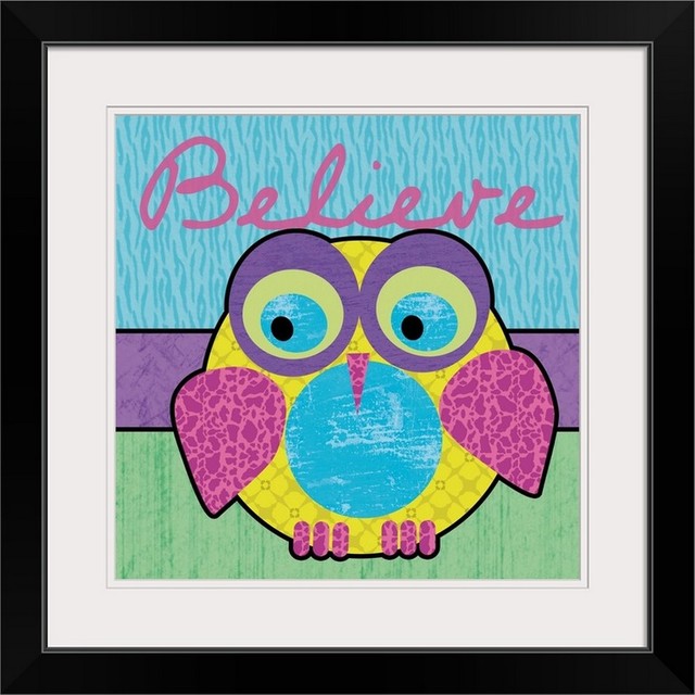 Believe Owl Black Framed Art Print Contemporary Kids Wall