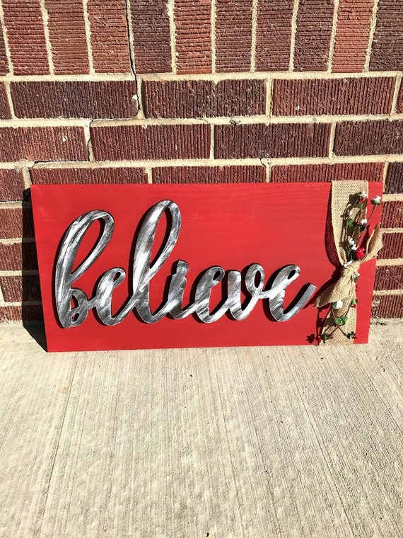 Amazon Com Believe Wooden Christmas Sign Red Christmas Sign Believe Christmas Decor Holiday Signs Home Accessory Gift Sign 10 X15 Inches Wood Wall Hanging Plaque Sign Home Kitchen