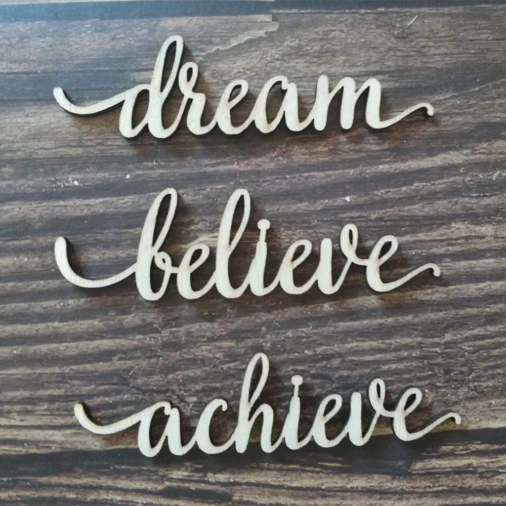 12pcs Dream Believe Achieve Wood Sign Laser Cut Wooden Signs Home