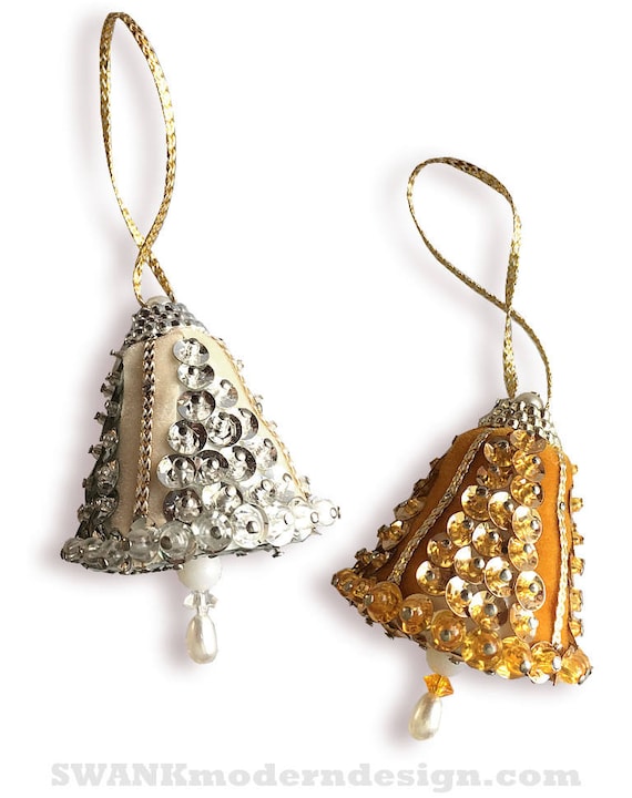 Vintage Silver And Gold Sequin Bell Christmas Ornaments Etsy