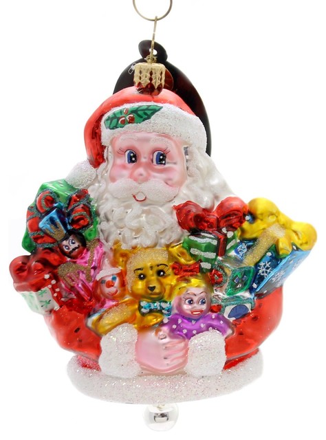 Christopher Radko Toyful Tidings Blown Glass Ornament Santa Bell