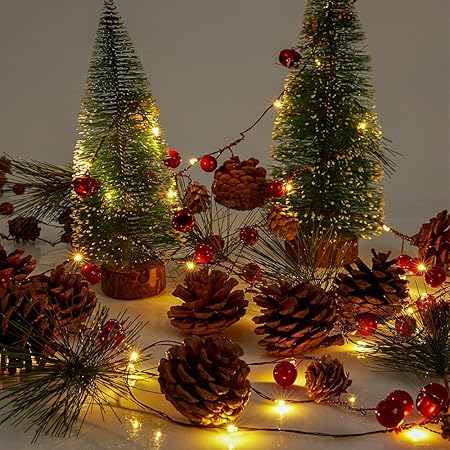 E More String Lights With Pine Cone Red Berry Bell Garland With