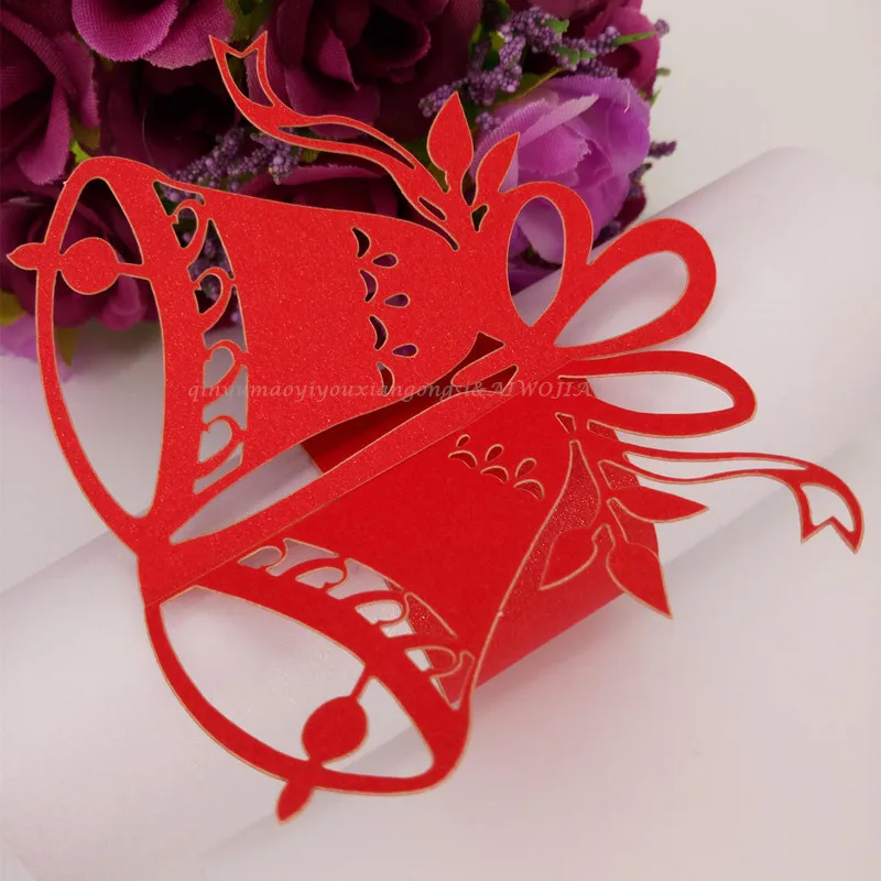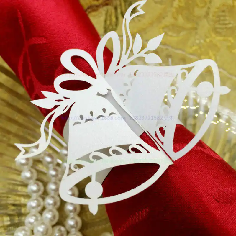 100pcs Laser Cut Bell Napkin Rings Serviette Holder Table