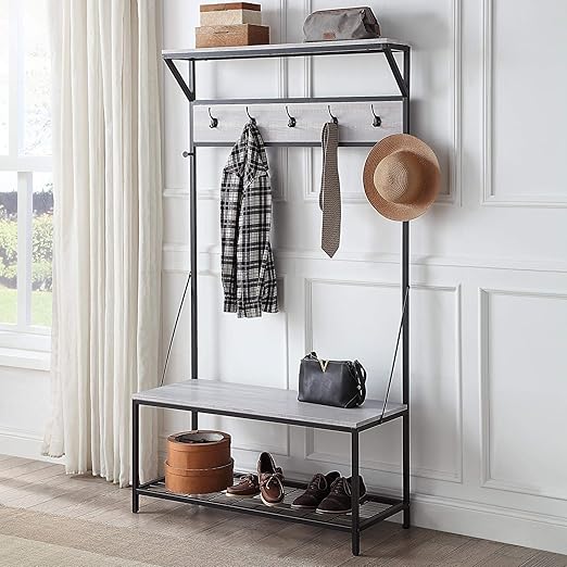 2020 Vintage Coat Rack Shoe Bench Hall Tree Entryway Storage