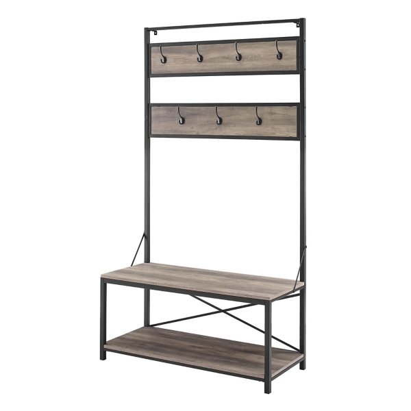 Refinery Hall Tree With Shoe Storage Bench In Rustic Gray