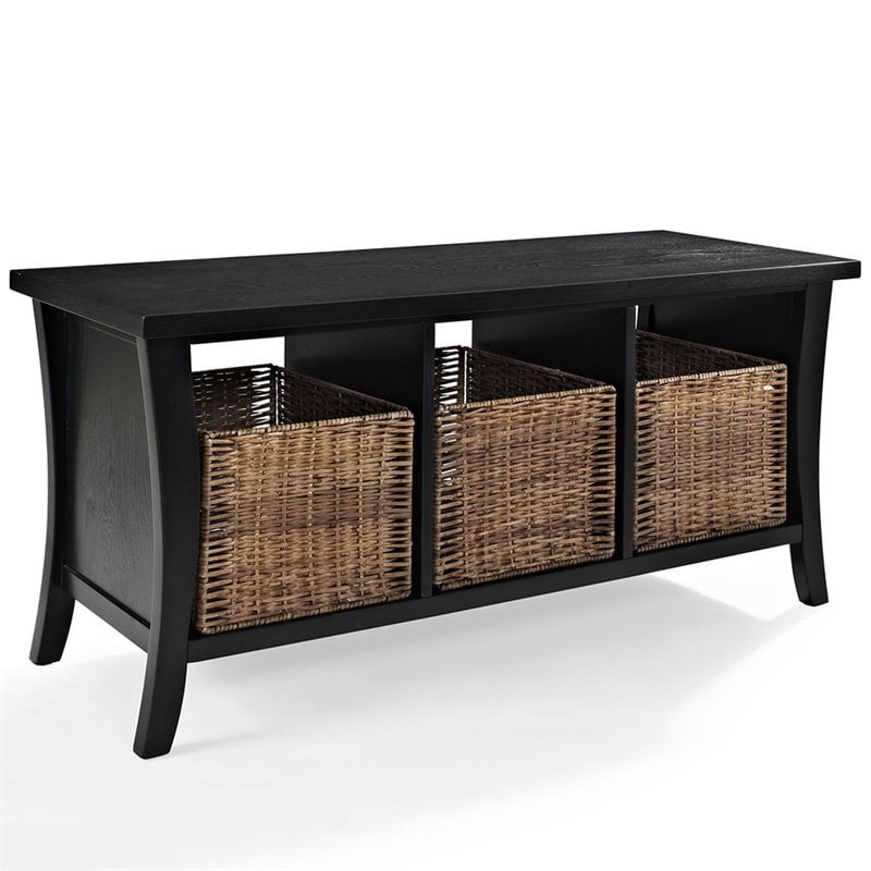 Crosley Wallis Storage Entryway Bench With Baskets In Black