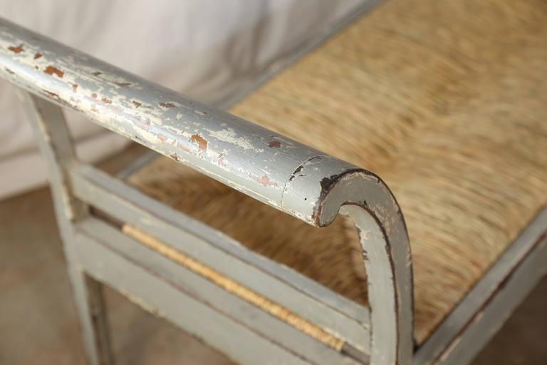 Swedish Grey Painted Rustic Bench With Rush Seat Chairish