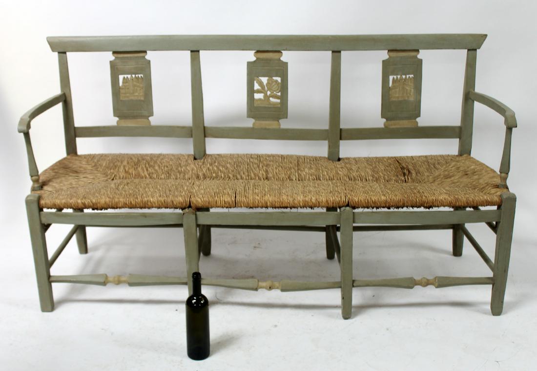 1099 801 French Country Rush Seat Bench Or Settee With Custom