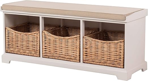 Bliss And Bloom Hallway Storage Seat Bench 3 Rattan Baskets
