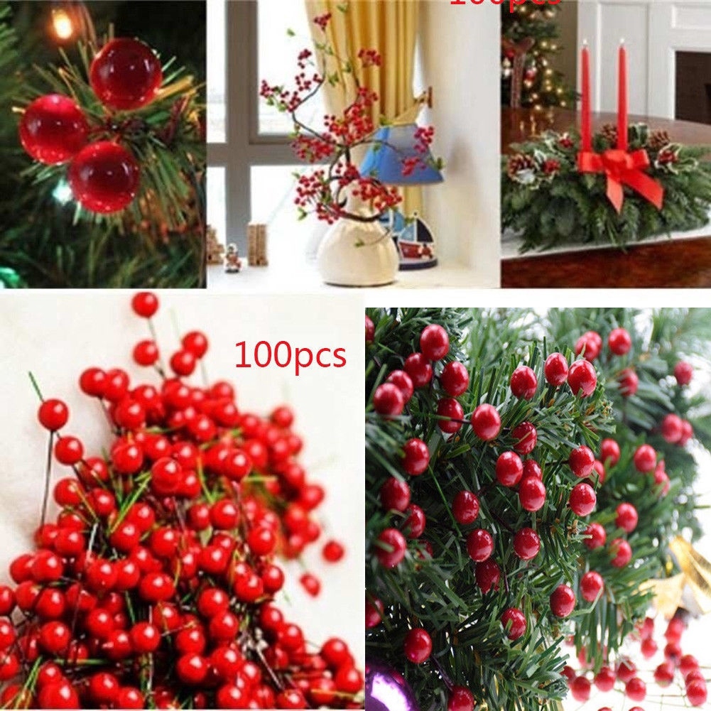100pcs Artificial Red Holly Berry Garland For Christmas Tree Decor