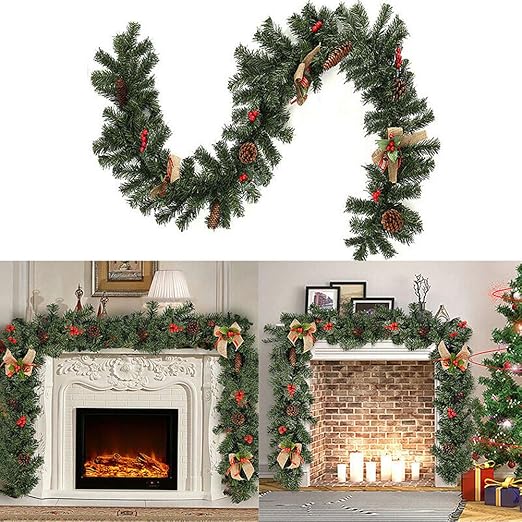 8ft Christmas Holly Berry Garland Tree Wreath Tinsel Ornament