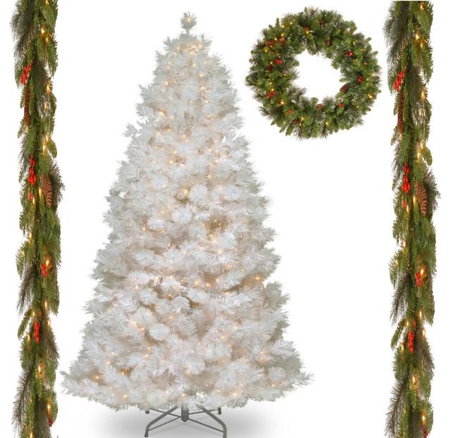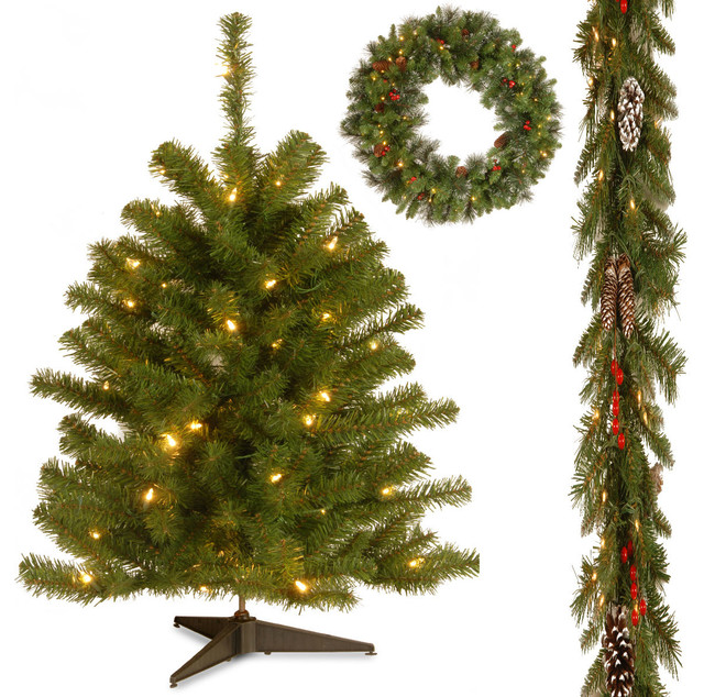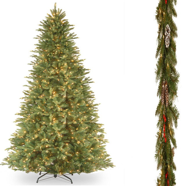 6 1 2 Fir Hinged Tree With 9 X10 Frosted Berry Garland And 30