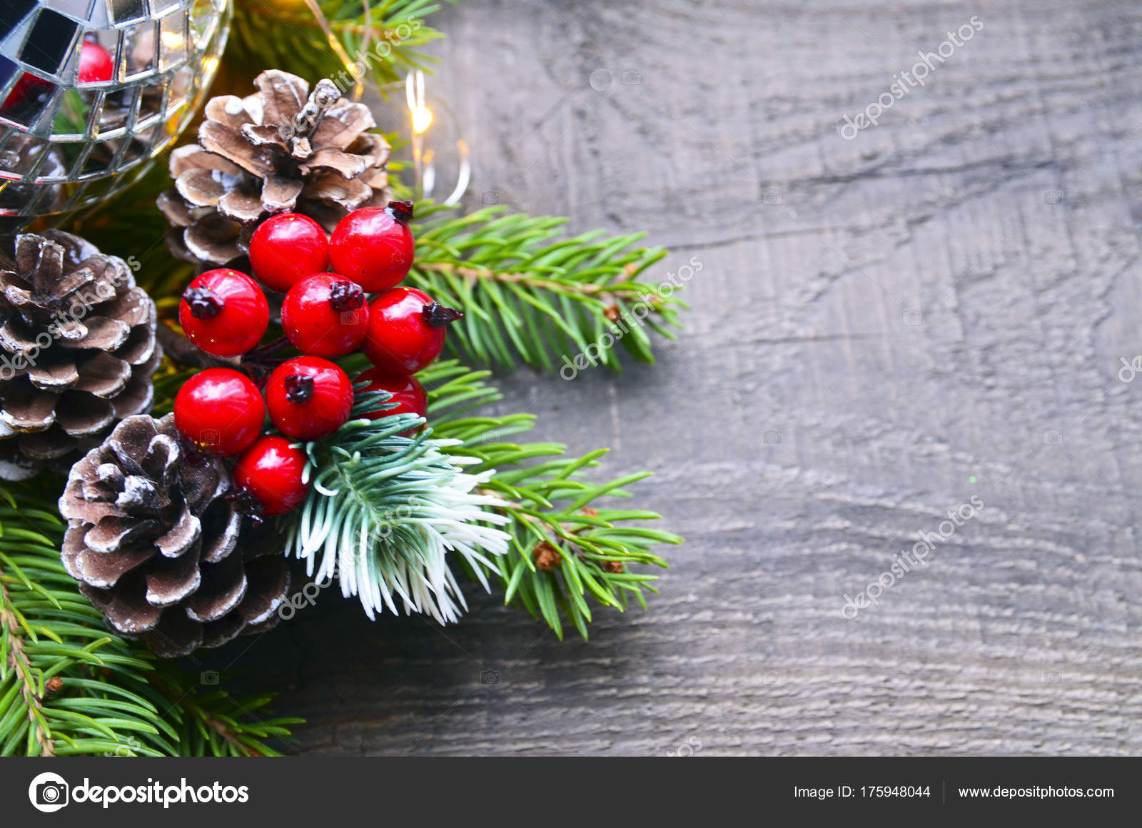 Christmas Decoration Fir Tree Red Berries Garland Lights Pine