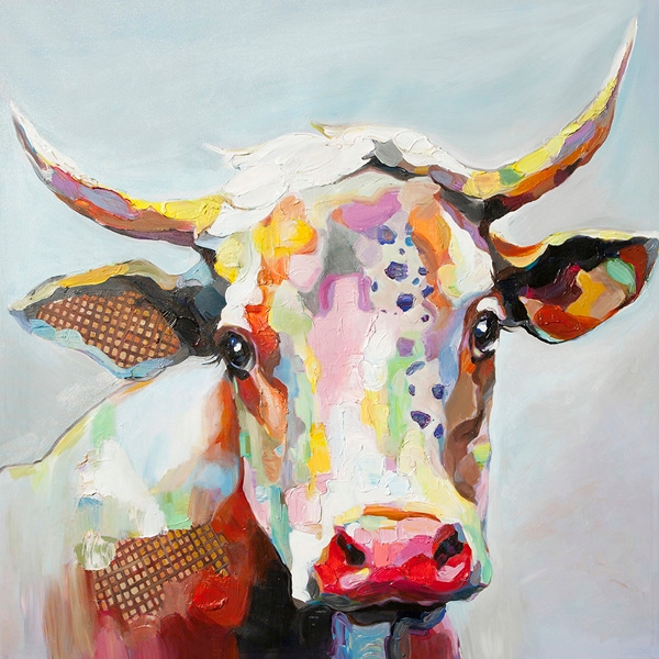 50 X 50 In Colorful Cow Canvas At Home