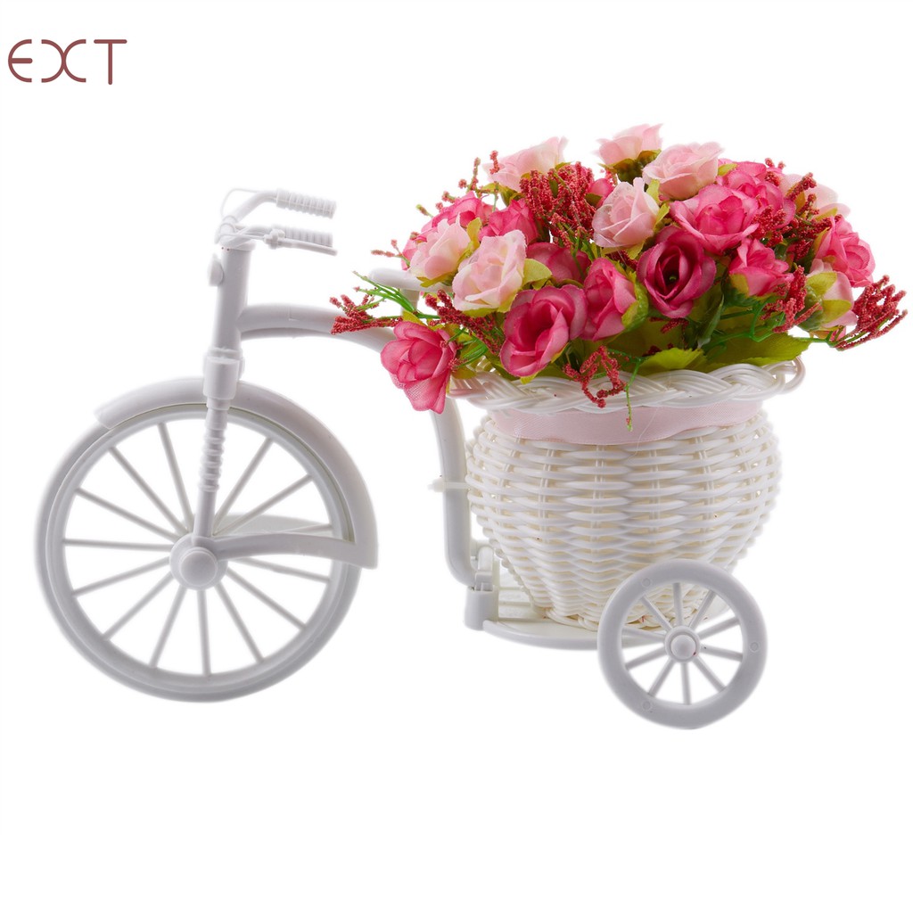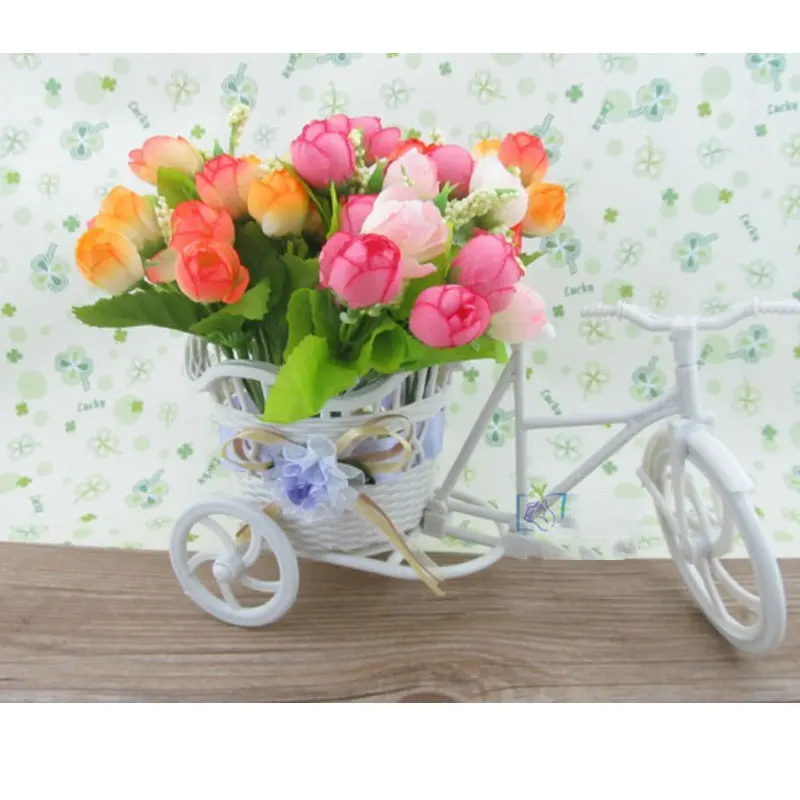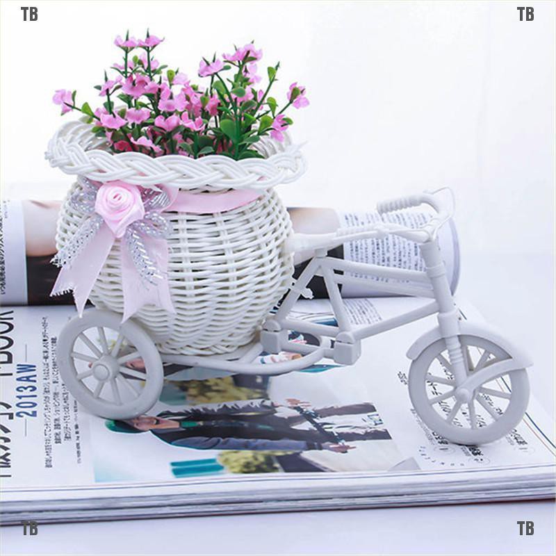 Diy Plastic White Tricycle Bike Flower Basket Bicycle Container