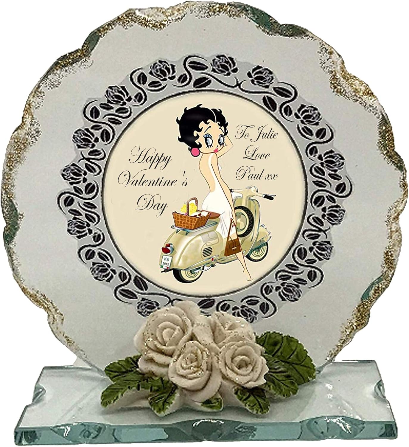 Betty Boop Valentine Personalised Gift Vespa Bike Cut Glass Plaque
