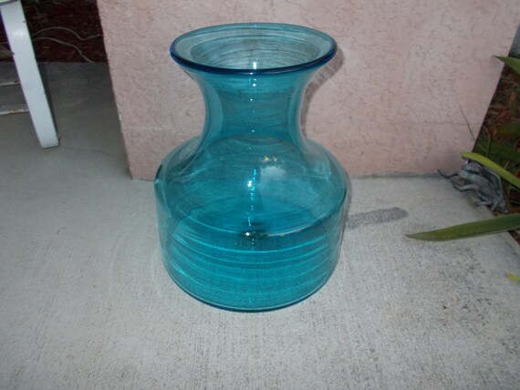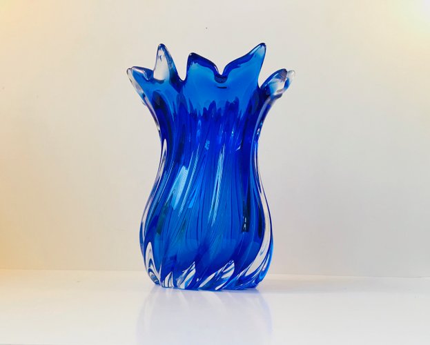 Large Blue Martini Handblown Glass Vase 1970 S Sirtorial