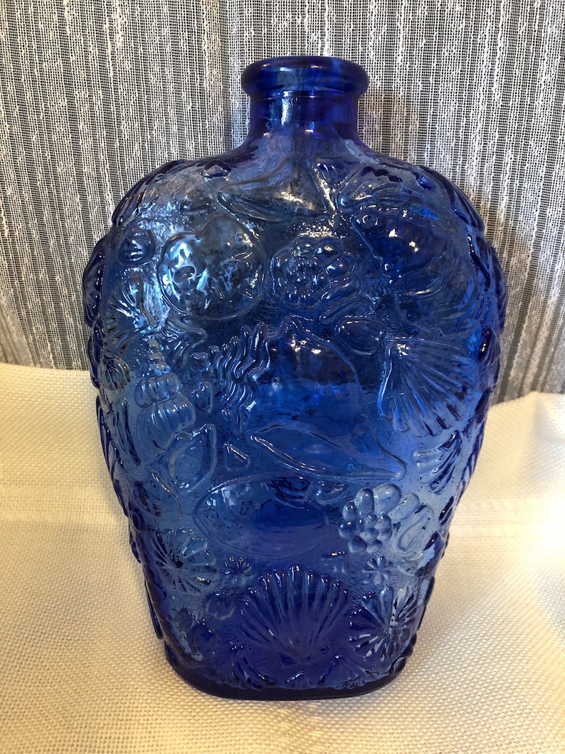 Vintage Large Blue Glass Jug Bottle Large Blue Glass Jug