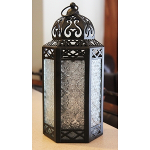 Big Antique Hexagon Moroccan Filigree Lantern Multicolor Patterned