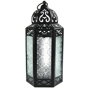 Big Antique Black Moroccan Lantern Multicolor Patterned Glass