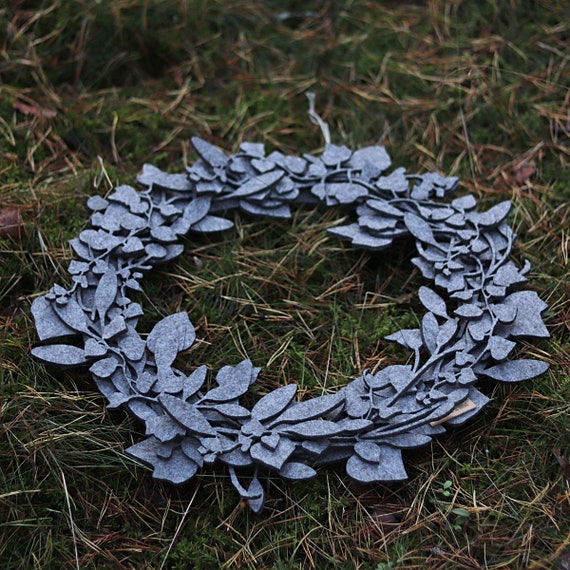 Felt Wreath Grey Big Wreath With Leaves Etsy