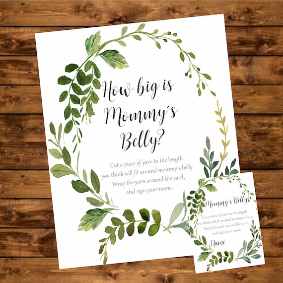 Greenery How Big Is Mommy S Belly Printable Instant Download Watercolor Leaf Wreath Baby Shower Game Guess How Big Is Mommy S Belly Game By Isi Designs Catch My