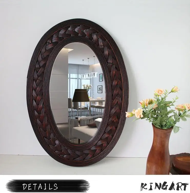 Big Wall Mirror Bamboo And Wooden Frame Oval Wall Mirror Living