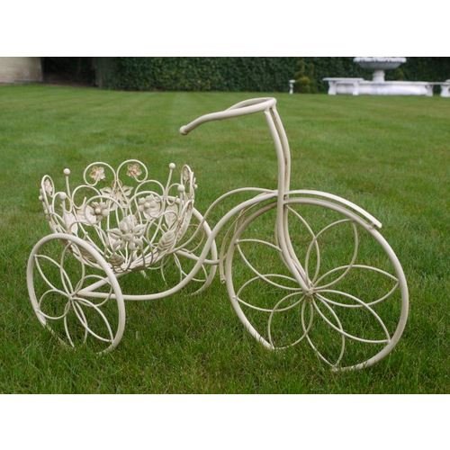 Large Iron Bicycle Planter Stand W Butterflies Antique White