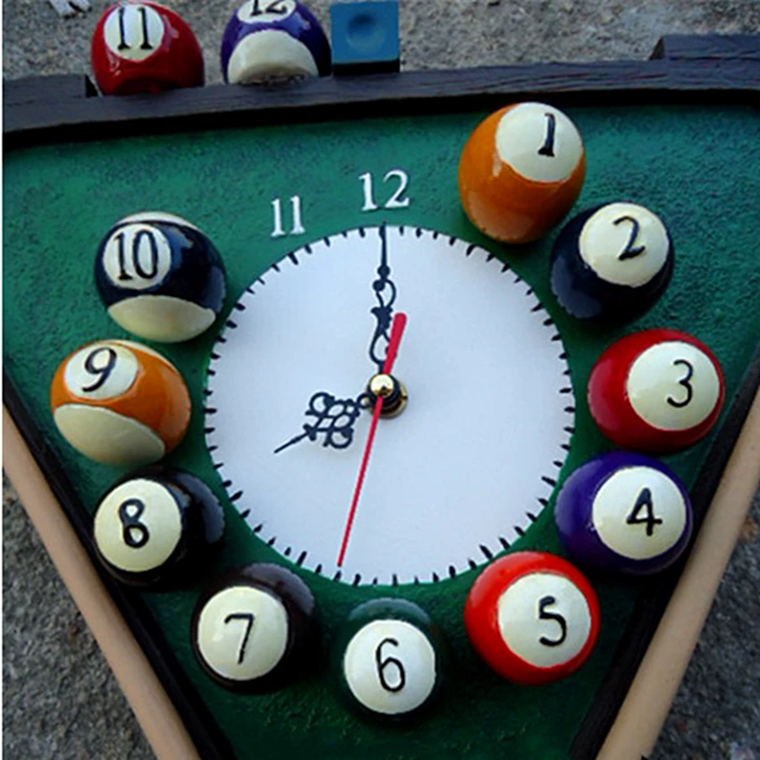 New Resin Crafts Triangle Pool Ball Clock Billiard Wall Clock