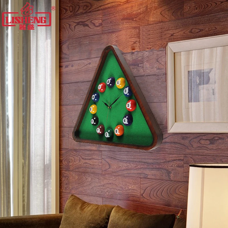 Triangle Pool Ball Clock Billiard Wall Clock Woods Cues