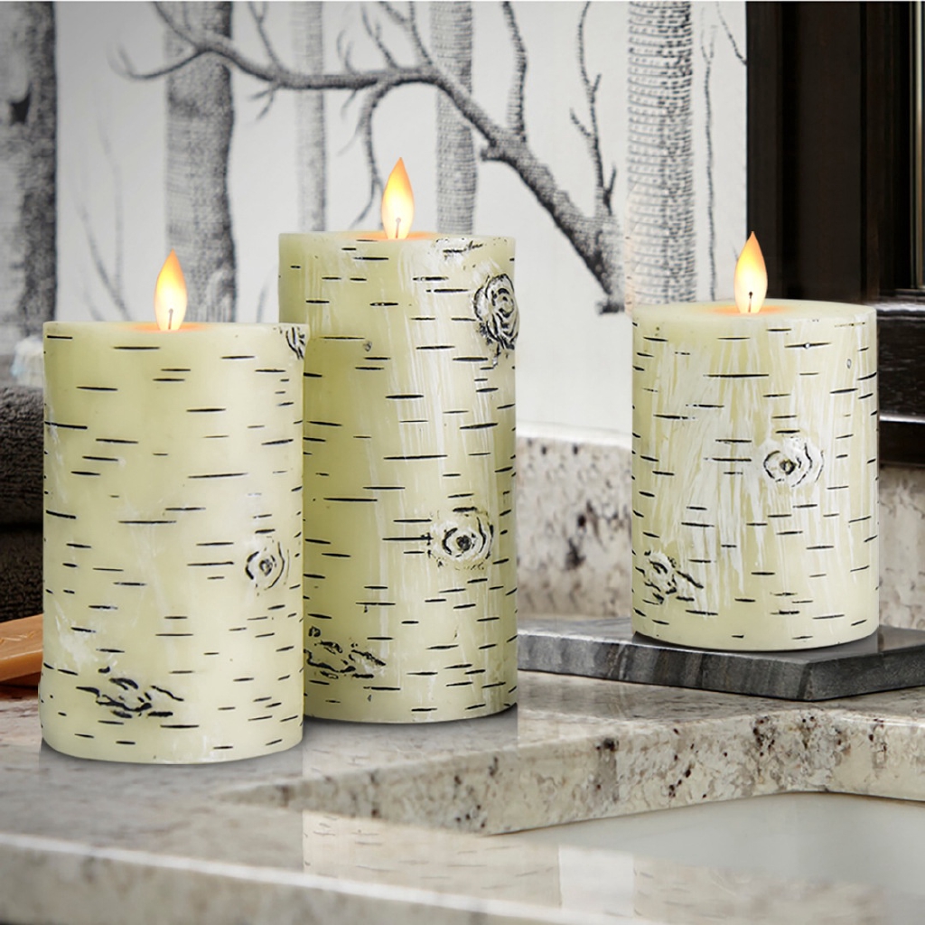 Flameless Led Candles Flickering Birch Bark Unscented Pillar
