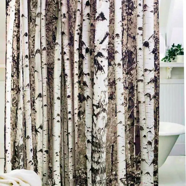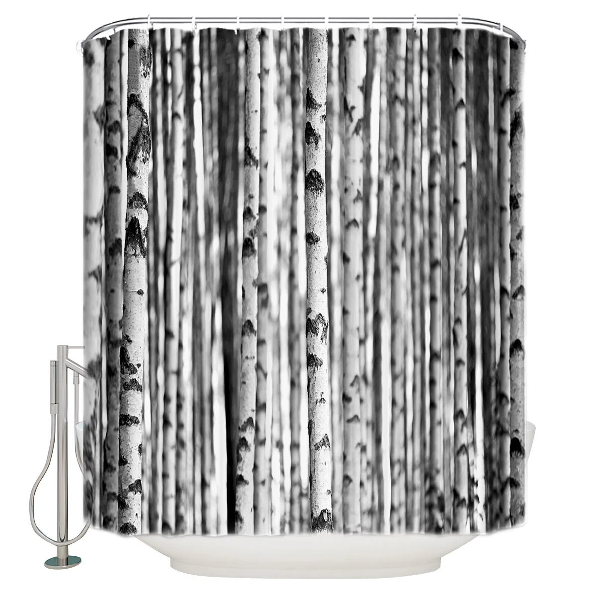 Myru New Creative Birch Tree Shower Curtain Forest Trees For
