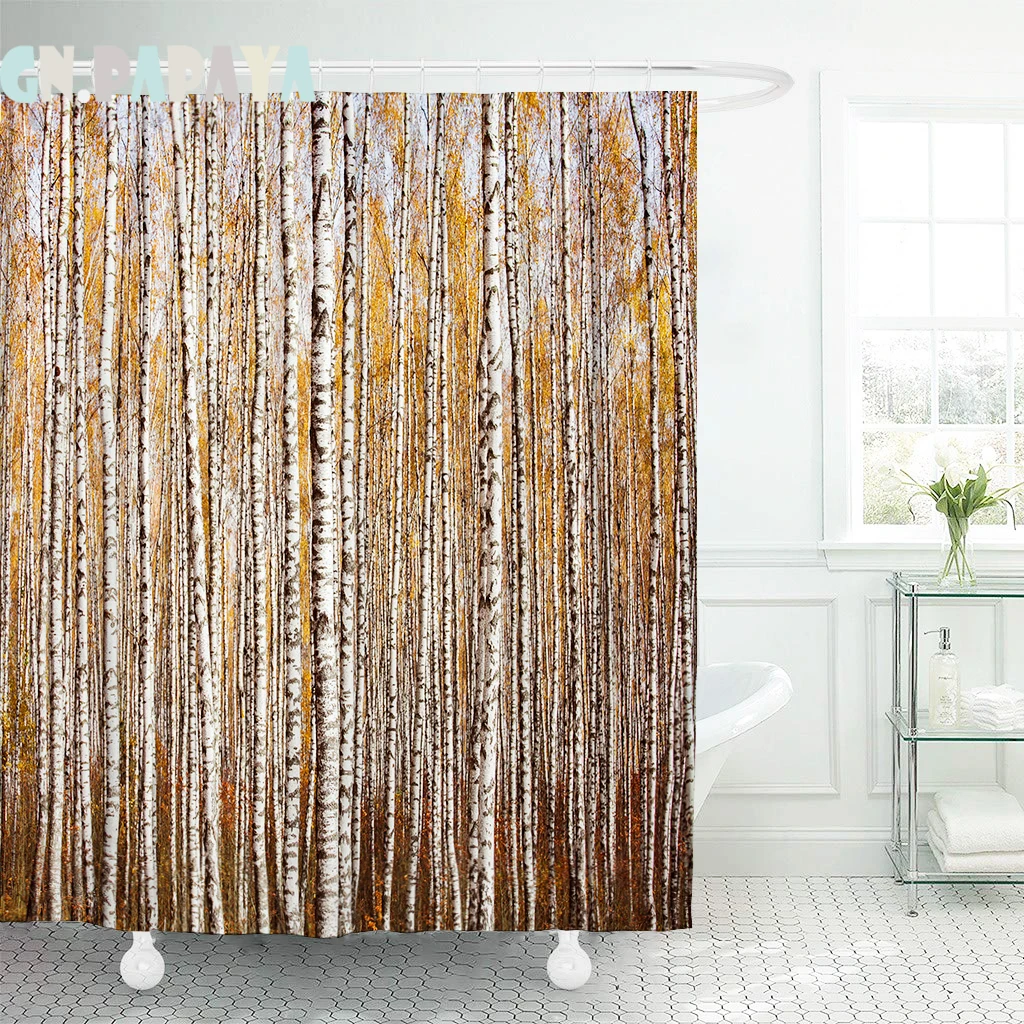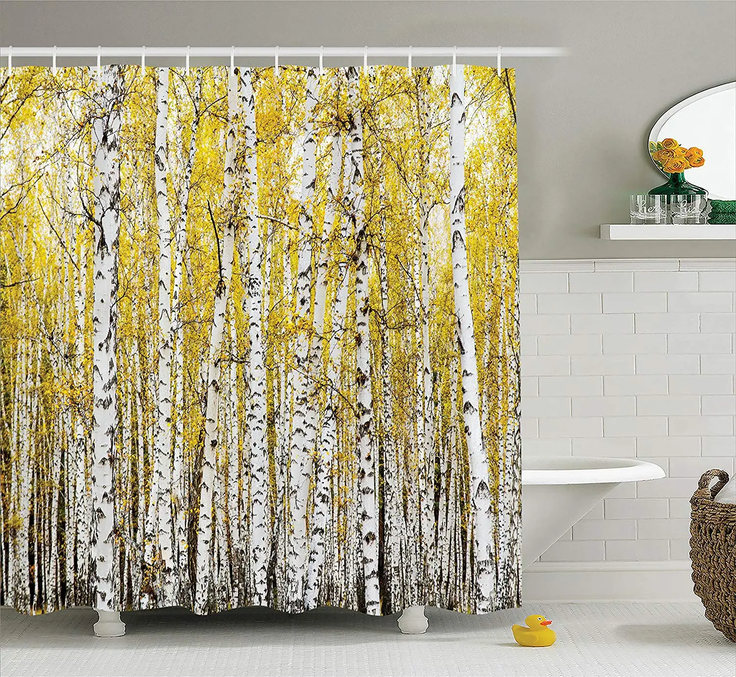 Birch Forest Bath Curtains Waterproof Polyester Gold Tree Scenic