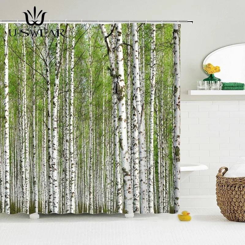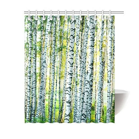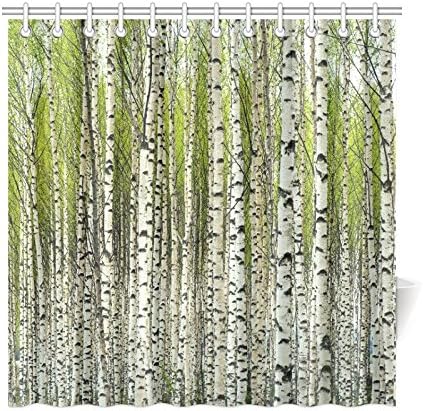 Bpbop Home Bath Decor Fabric Green Birch Tree Shower Curtain Hooks