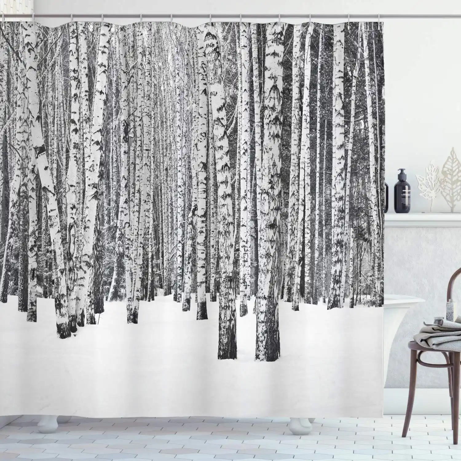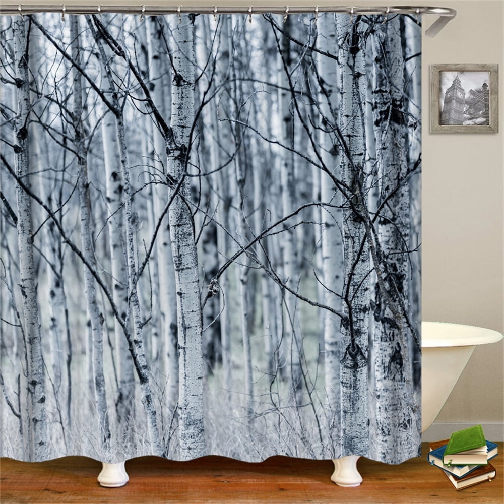 Gckg Home Bathroom Winter White Fabric Birch Tree Decor Shower