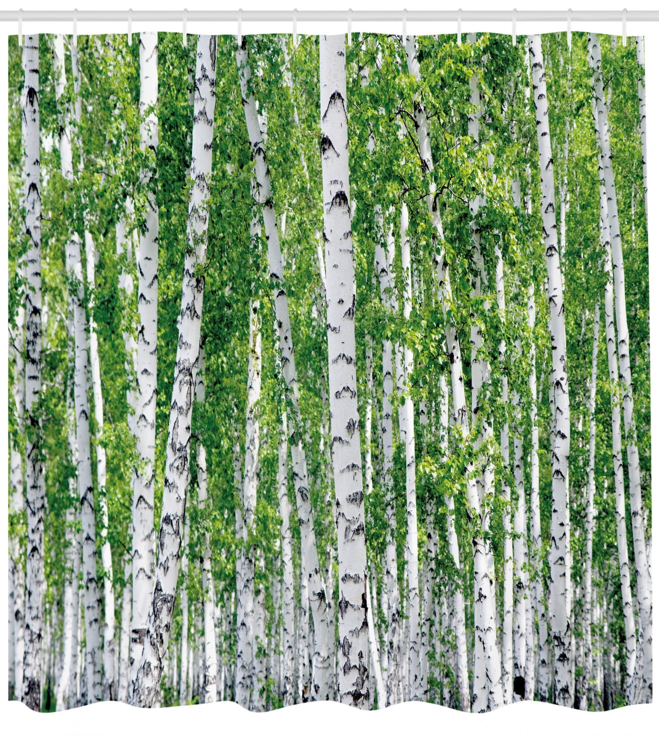Ambesonne Birch Tree Shower Curtain Forest Seasonal Nature
