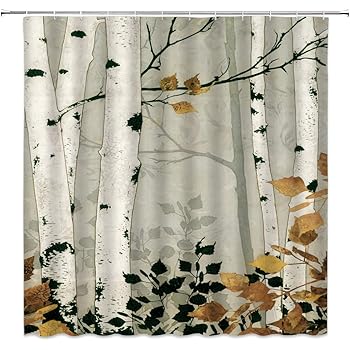 Amazon Com Dachengxing Birch Trees Shower Curtain Autumn Forest