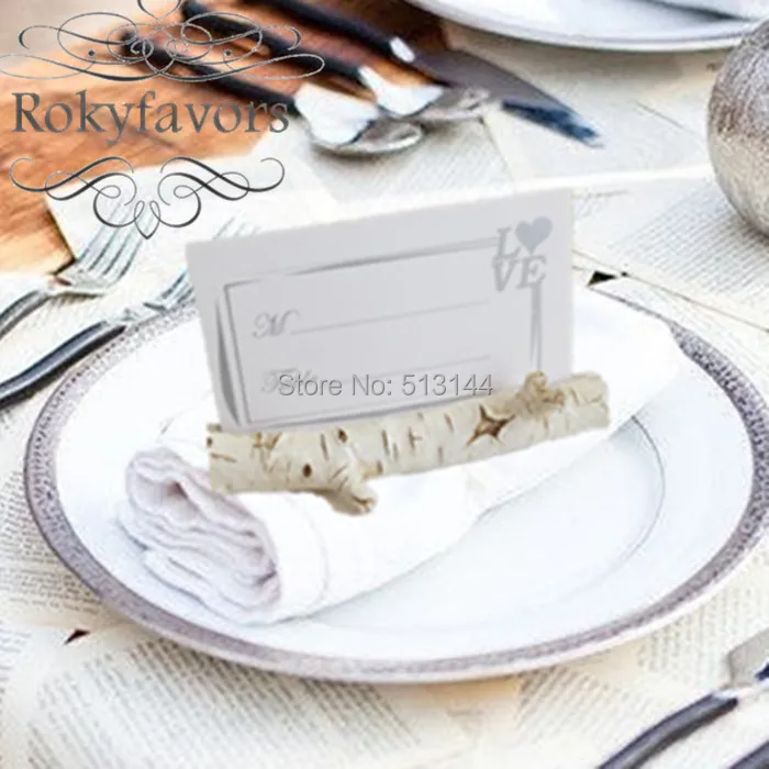 Free Shipping 24pcs Rustic Theme Birch Tree Log Place Card Holder