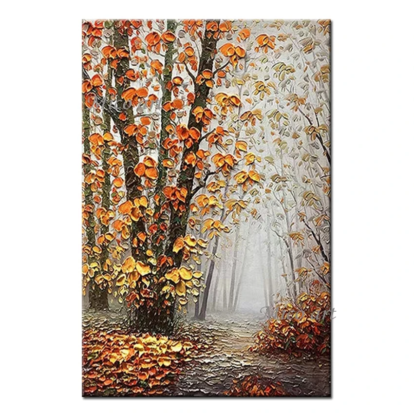 Latest Cheap Landscape Knife Thick Oil Painting Wall Canvas Birch