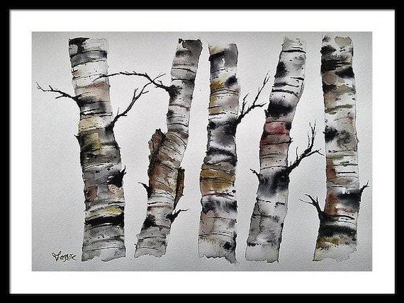Watercolor Birch Trees Painting Print Titled Blue Etsy