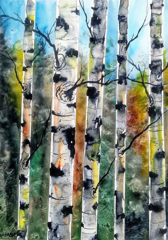 Original Painting Watercolor Birch Tree Art Original Etsy