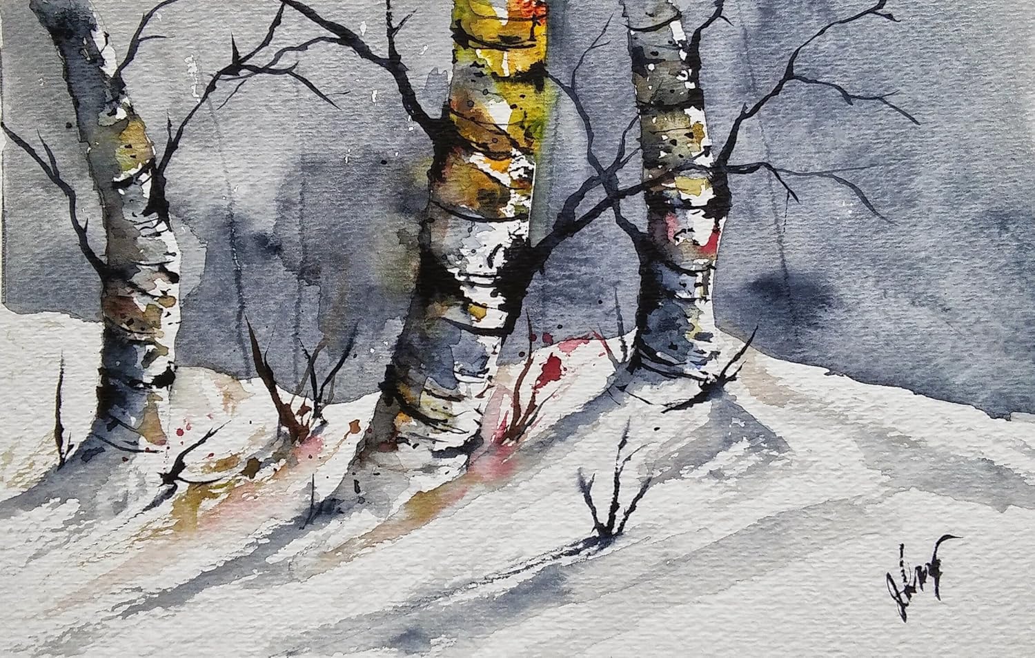 Watercolor Birch Trees Lesson Deep Space Sparkle