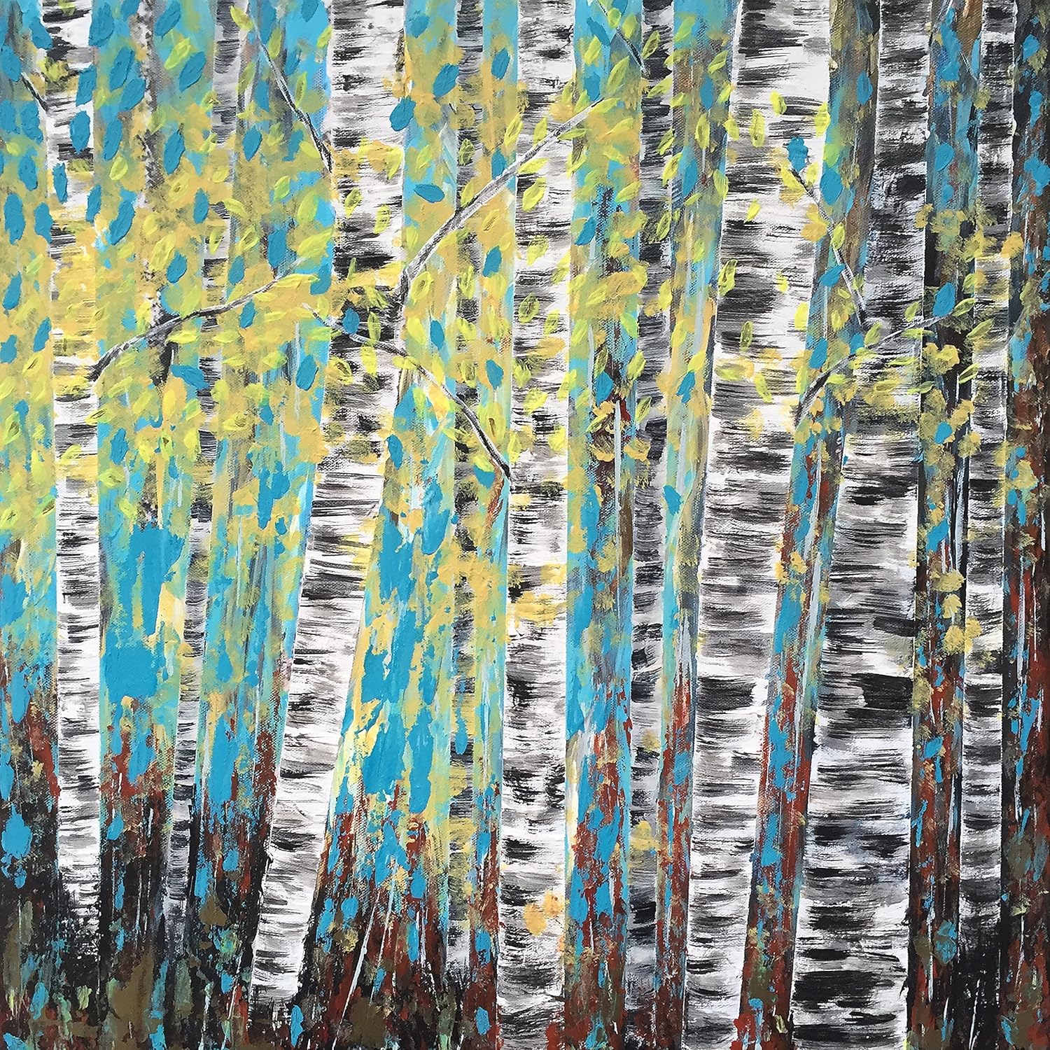 Little Seeds Original Acrylic Aspen Birch Tree Acrylic Painting