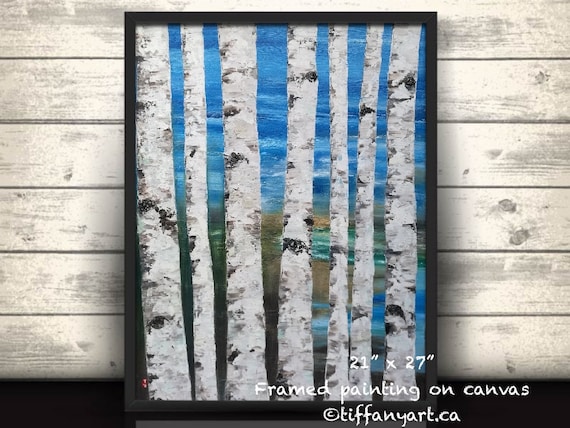 Original Wall Art Birch Tree Painting Landscape Painting Custom Can