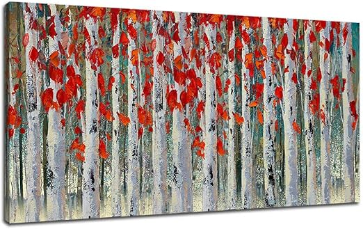 Amazon Com Ardemy Canvas Wall Art White Birch Tree Red Leaves