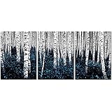 Sechars Birch Tree Canvas Wall Art Blue Forest Pictures Teal